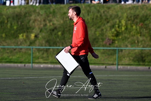 Fussball, Rheinlandliga, SG Malberg (schwarz) vs. SG Schneifel (rot), 26.10.2024 | ||