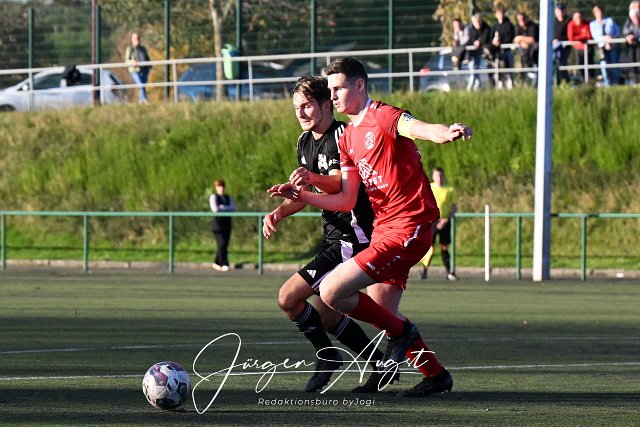 Fussball, Rheinlandliga, SG Malberg (schwarz) vs. SG Schneifel (rot), 26.10.2024 | ||
