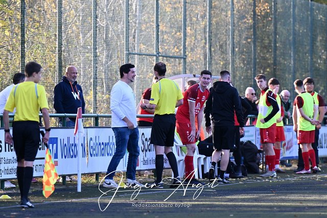 Fussball, Rheinlandliga, SG Malberg (schwarz) vs. SG Schneifel (rot), 26.10.2024 | ||