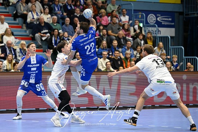 Kentin Mahe (VfL Gumersbach 22) gegen Leif Tissier (Handball Sportverein Hamburg 7) VfL Gummersbach vs. Handball Sportverein Handball, Daikin 1. Bundesliga, 9. Spieltag, Spielzeit 2024-2025, Schwalbe Arena Gummersbach, 03.11..2024 Foto: Eibner-Pressefoto/Juergen Augst | ||