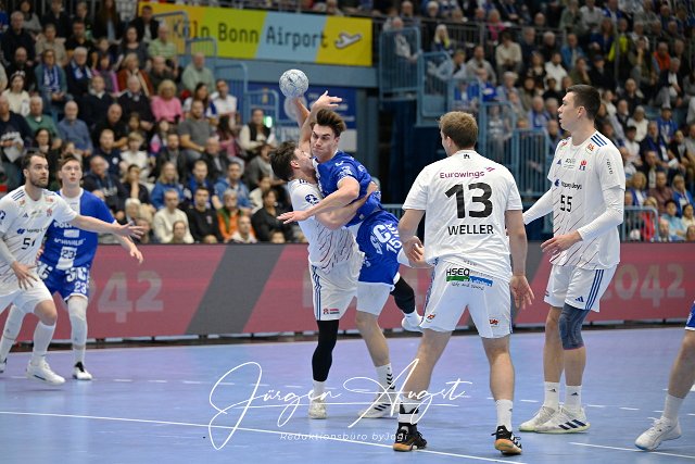 Miro Schluroff (VfL Gummersbach 15) gegen Leif Tissier (Handball Sportverein Hamburg 7) VfL Gummersbach vs. Handball Sportverein Handball, Daikin 1. Bundesliga, 9. Spieltag, Spielzeit 2024-2025, Schwalbe Arena Gummersbach, 03.11..2024 Foto: Eibner-Pressefoto/Juergen Augst | ||