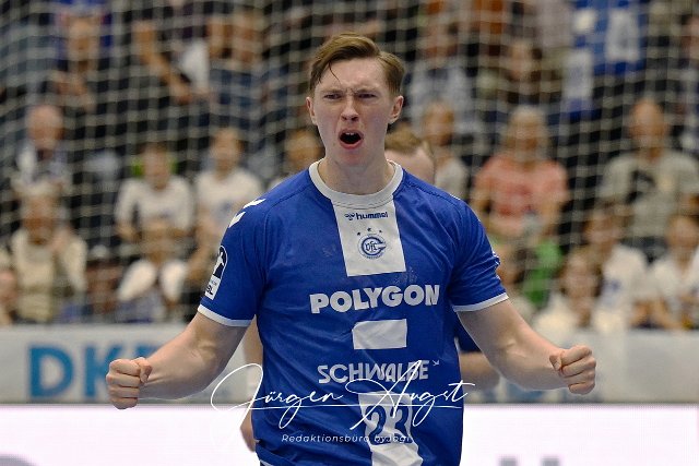 Solobild Spieler des Tages Ole Pregler (VfL Gummersbach 23) jubelt mit geballten Faeusten VfL Gummersbach vs. Handball Sport Verein Hamburg, Daikin 1. Bundesliga, 9. Spieltag, Spielzeit 2024-2025, Schwalbe Arena Gummersbach, 03.11.2024 Foto: Eibner-Pressefoto/Juergen Augst | ||
