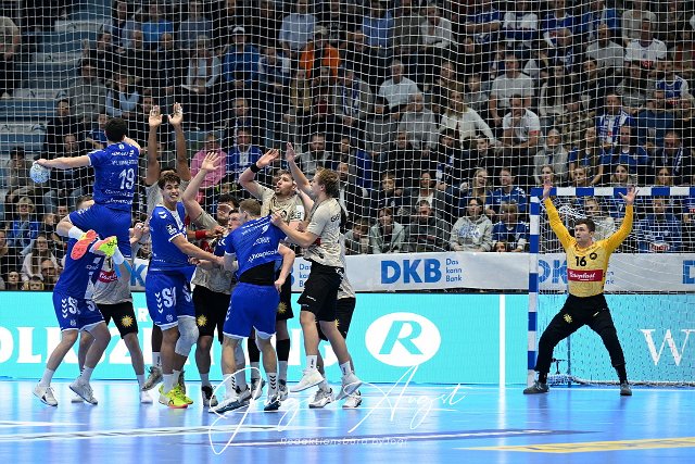 Giorgi Tskhovrebadze (VfL Gummersbach, #19) uebersoringt die Abwehrkette des Bergischen HC GER, VfL Gummersbach vs. Bergischer HC, Handball, DHB-Pokal, Achtelfinale, Spielzeit 2024-2025, 14.11.2024 Foto: Eibner-Pressefoto/Juergen Augst | ||