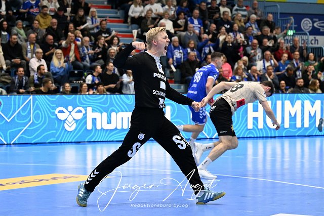Bertram Obling (VfL Gummersbach, #16) jubelt GER, VfL Gummersbach vs. Bergischer HC, Handball, DHB-Pokal, Achtelfinale, Spielzeit 2024-2025, 14.11.2024 Foto: Eibner-Pressefoto/Juergen Augst | ||