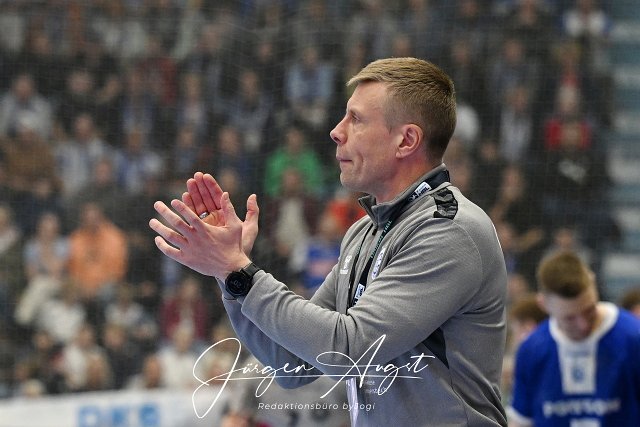 Gudjon Valur Sigurdsson (VfL Gummersbach, Trainer) applaudiert GER, VfL Gummersbach vs. Bergischer HC, Handball, DHB-Pokal, Achtelfinale, Spielzeit 2024-2025, 14.11.2024 Foto: Eibner-Pressefoto/Juergen Augst | ||