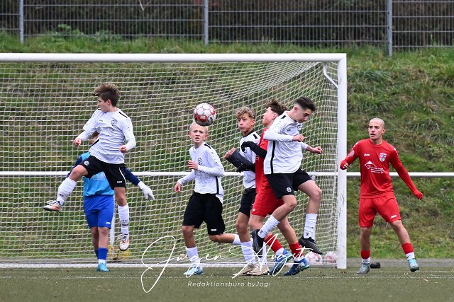 Fussball, Rheinlandliga C-Junioren, JSG Neitersen-Altenkirchen-Weyerbusch (rot) vs. SSV Heimbach-Weis (weiss/schwarz), 16.11.2024 | ||