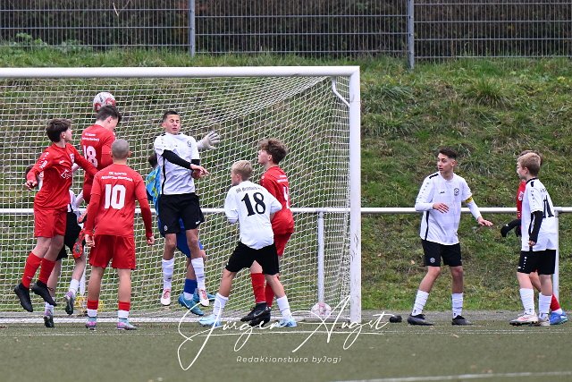 Fussball, Rheinlandliga C-Junioren, JSG Neitersen-Altenkirchen-Weyerbusch (rot) vs. SSV Heimbach-Weis (weiss/schwarz), 16.11.2024 | ||