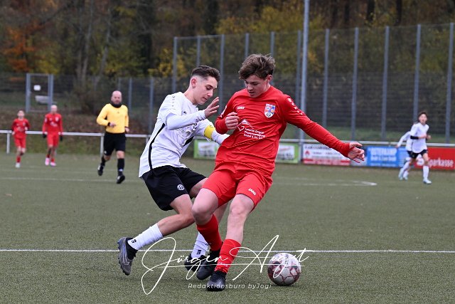 Fussball, Rheinlandliga C-Junioren, JSG Neitersen-Altenkirchen-Weyerbusch (rot) vs. SSV Heimbach-Weis (weiss/schwarz), 16.11.2024 | ||