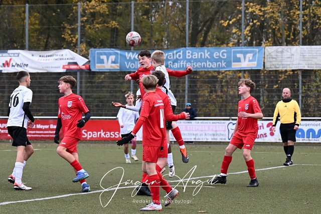 Fussball, Rheinlandliga C-Junioren, JSG Neitersen-Altenkirchen-Weyerbusch (rot) vs. SSV Heimbach-Weis (weiss/schwarz), 16.11.2024 | ||
