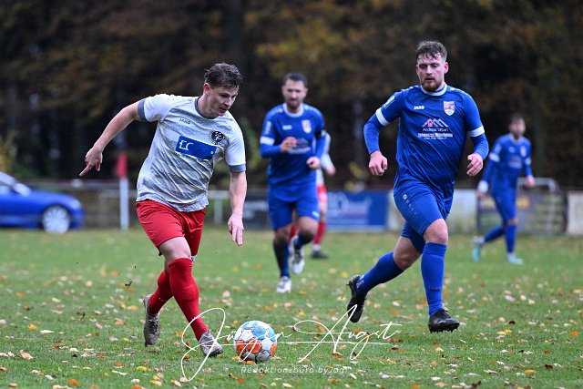 Fussball, Bezirksliga Ost, SG Berod-Wahlrod-Lautzert-Oberdreis (weiss-rot) vs. SG Neitersen-Altenkirchen (blau), 17.11.2024 | ||