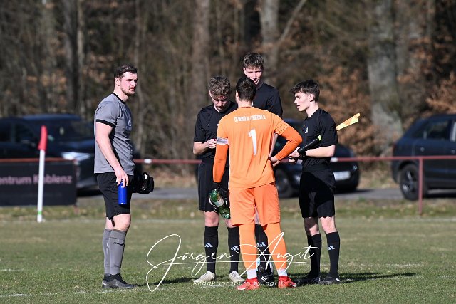 Fussball, Bezirksliga Ost, SG Berod-Wahlrod-Lautzert-Oberdreis (weiß/rot) vs. SG Mueschenbach (blau), 09.03.2025 | ||