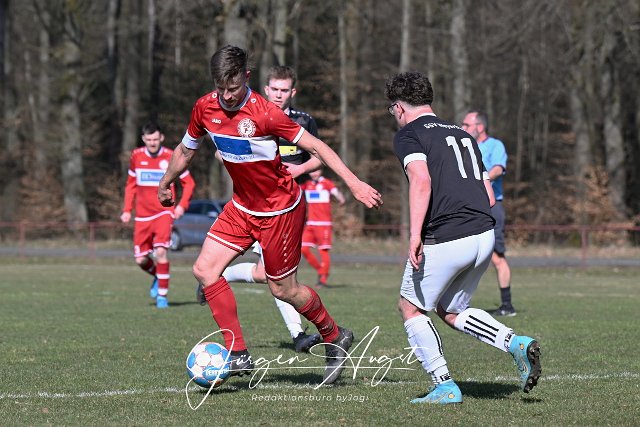 Fussball, Kreisliga B, SG Berod-Wahlrod-Lautzert-Oberdreis II (rot) vs. SSV Weyerbusch I (schwarz/weiß), 09.03.2025 | ||