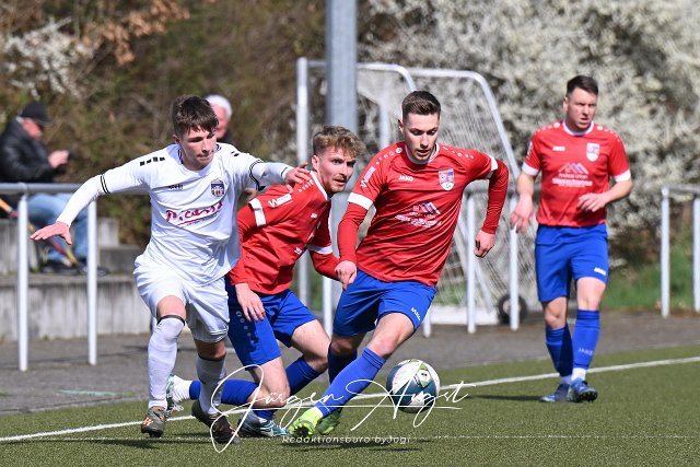 Fussball, Bezirksliga Ost, SG Neitersen-Altenkirchen (rot/blau) vs. TuS Montabaur (weiß), 30.03.2025 | ||