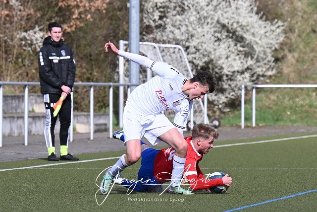 Fussball, Bezirksliga Ost, SG Neitersen-Altenkirchen (rot/blau) vs. TuS Montabaur (weiß), 30.03.2025 | ||