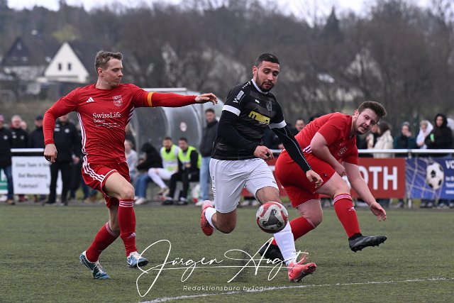 Fussball, Kreisliga B3, SSV Weyerbusch I (schwarz/weiß) vs. TuS Asbach II (rot) , 30.03.2025 | ||