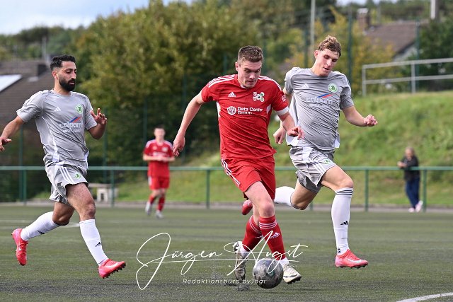 Fussball, Bezirksliga Ost, SG Malberg (rot) vs. FC Borussia Niederrossbach (grau), 13.09.2025 | ||