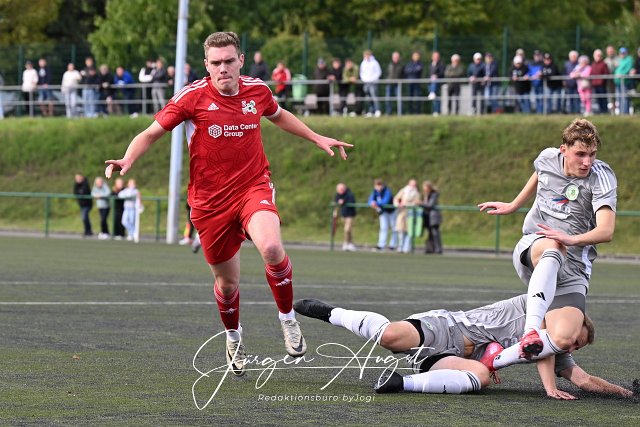 Fussball, Bezirksliga Ost, SG Malberg (rot) vs. FC Borussia Niederrossbach (grau), 13.09.2025 | ||