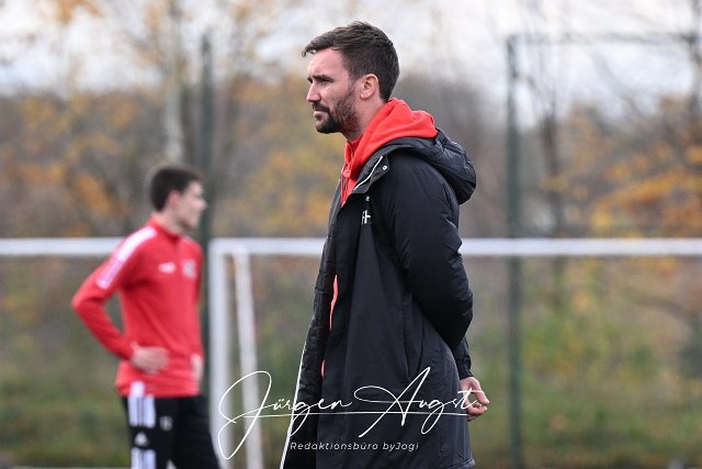 Fussball, Bezirksliga Ost, SG Malberg (rot) vs. SG Mueschenbach (blau), 02.11.2025 | ||