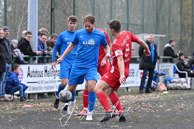 Fussball, Bezirksliga Ost, SG Malberg (rot) vs. SG Mueschenbach (blau), 02.11.2025 | ||