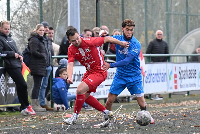 Fussball, Bezirksliga Ost, SG Malberg (rot) vs. SG Mueschenbach (blau), 02.11.2025 | ||