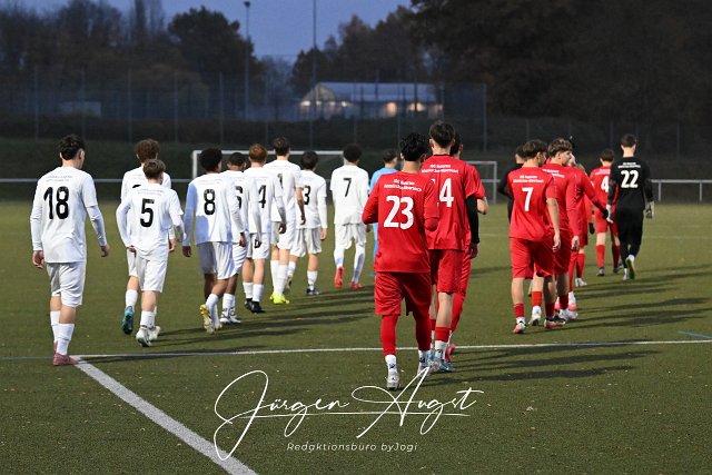 Fussball, Rheinlandliga B-Junioren, JSG Altenkirchen-Neitersen (rot) vs. JFV Wittlicher Tal (weiß), 08.11.2025 | ||
