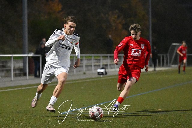 Fussball, Rheinlandliga B-Junioren, JSG Altenkirchen-Neitersen (rot) vs. JFV Wittlicher Tal (weiß), 08.11.2025 | ||
