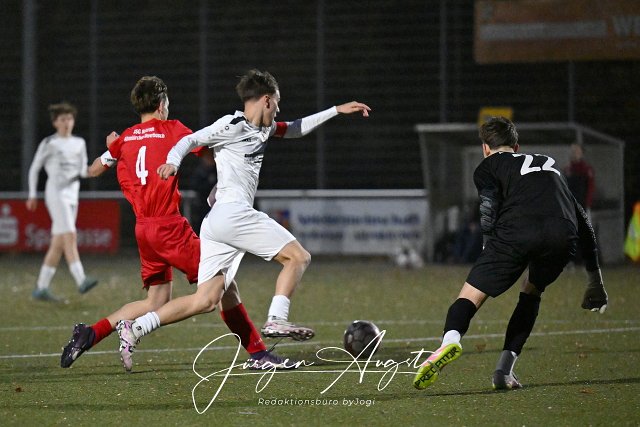 Fussball, Rheinlandliga B-Junioren, JSG Altenkirchen-Neitersen (rot) vs. JFV Wittlicher Tal (weiß), 08.11.2025 | ||