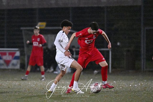 Fussball, Rheinlandliga B-Junioren, JSG Altenkirchen-Neitersen (rot) vs. JFV Wittlicher Tal (weiß), 08.11.2025 | ||