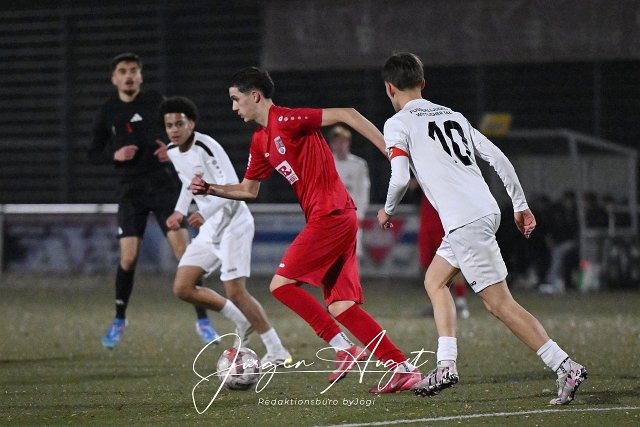 Fussball, Rheinlandliga B-Junioren, JSG Altenkirchen-Neitersen (rot) vs. JFV Wittlicher Tal (weiß), 08.11.2025 | ||